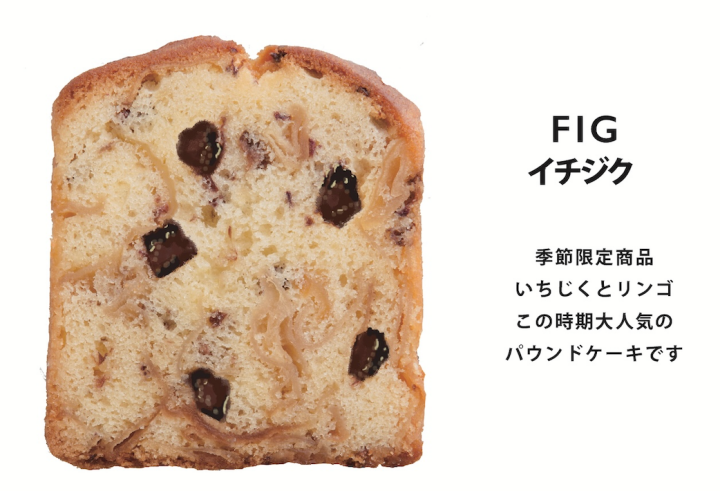 しっとりとした生地に、イチジクのプチプチとした食感がアクセントになって、ほんのり甘いりんごと抜群の相性です🍎